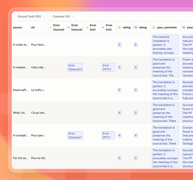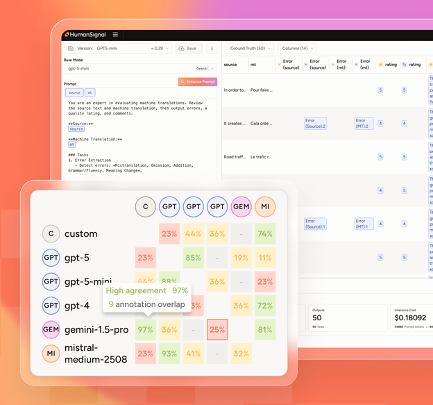LLM leaderboards and off-the-shelf benchmarks provide useful reference points, but they rarely reflect the unique challenges of your business. HumanSignal makes it easy to design custom benchmarks that align with your specific domain, data, and success metrics.