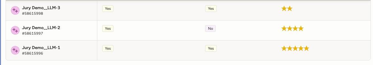 Imagine that we got the following outputs from a group of three jury LLMs: