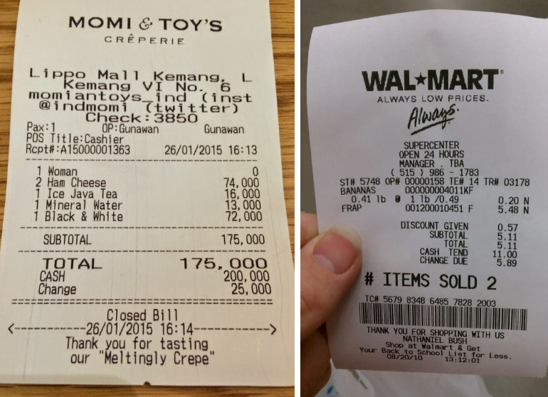 We started where every good benchmark starts: with real data. For this example, we tackled a receipts extraction use case, where our AI system processes images into structured data with store names, addresses, line items, and dates. We collected receipt images representing the messy reality a production system would face.