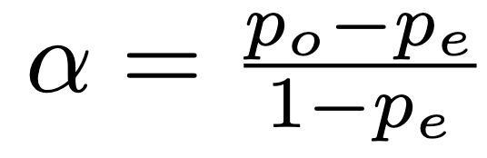 Observed agreement is the average agreement across all rated items, normalized by the number of raters and label options. We’ll use this formula: