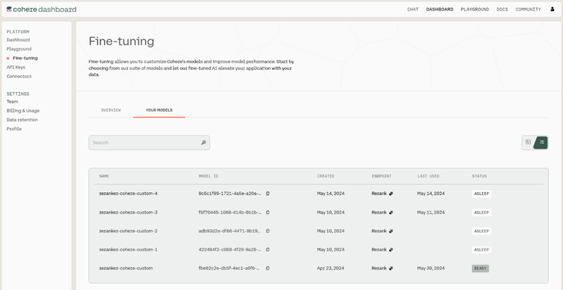 raise Exception(f'No reranker-cohere- models found: {response.finetuned_models}')