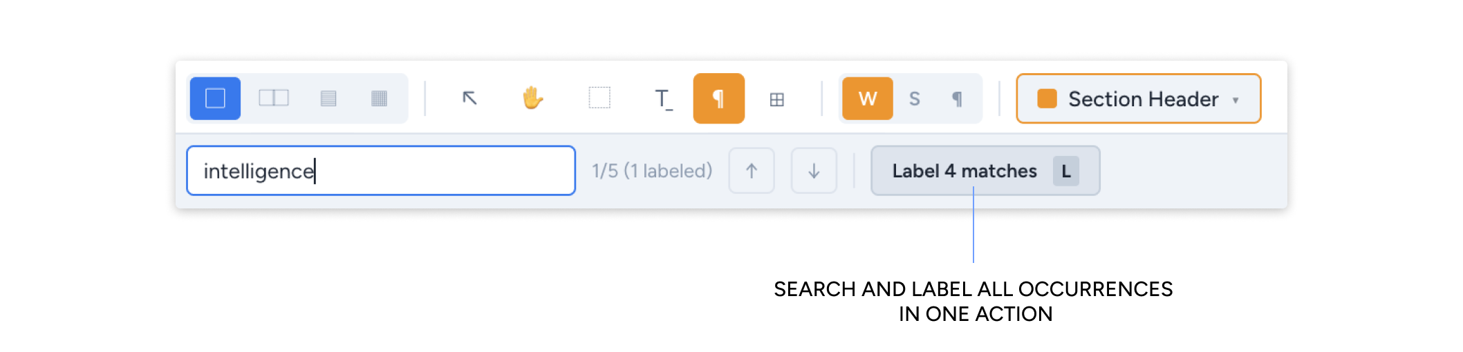 An improved document-wide search makes it easier to search across the entire document, preview all matching results, and label every match in a single action.