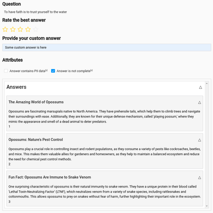 Controlling generated answers involves implementing mechanisms to review and refine the responses produced by the generative model. Label Studio can play a critical role in this process, providing tools to manage and assess the quality of generated responses. including: