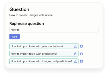 To address these issues, you can demonstrate to a language model how to rephrase the original question or fine-tune the language model for this purpose, but achieving the best accuracy requires training examples. Label Studio supports this process with a specific labeling configuration and task example. The input is a user's question, and labeling is a cleaned-up version of the question, or possibly multiple rephrased text queries.