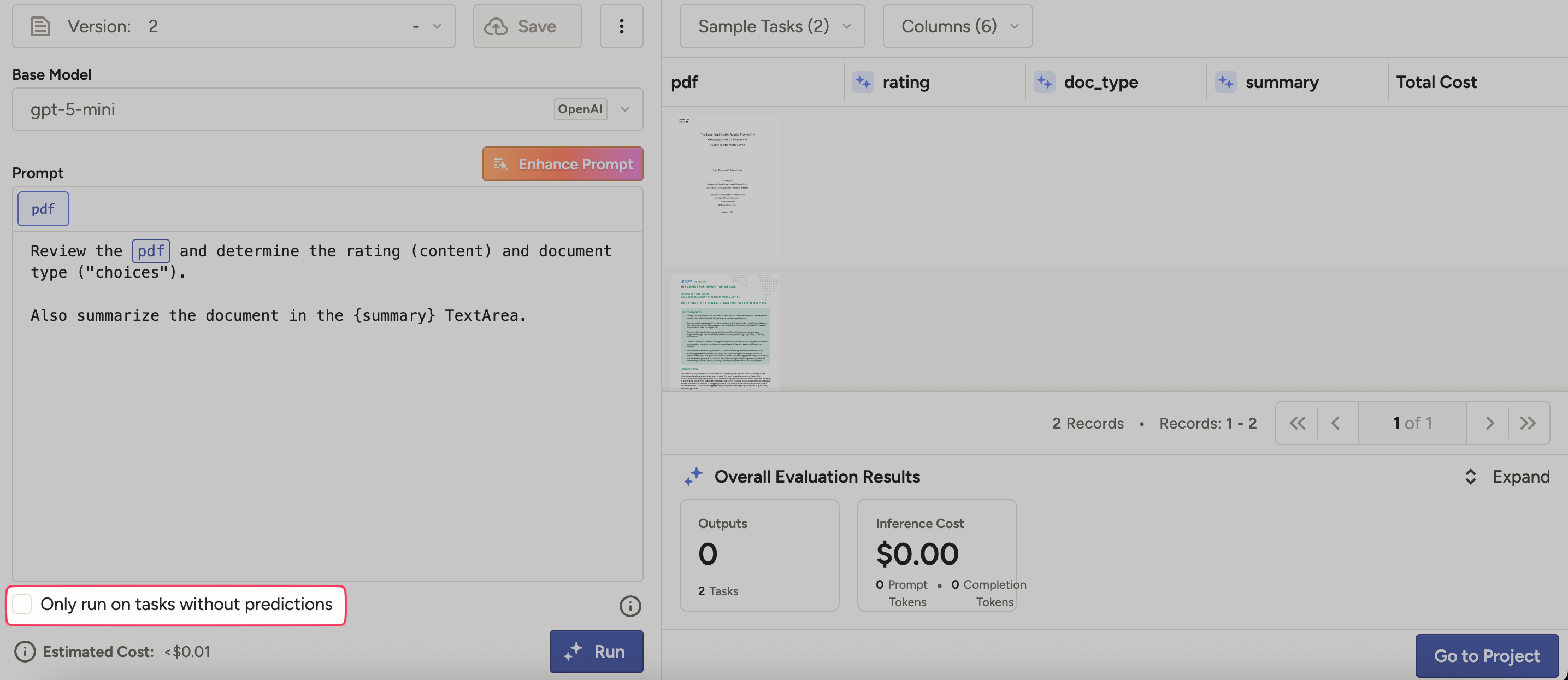 There is a new option to only run a Prompt against tasks that do not already have predictions.