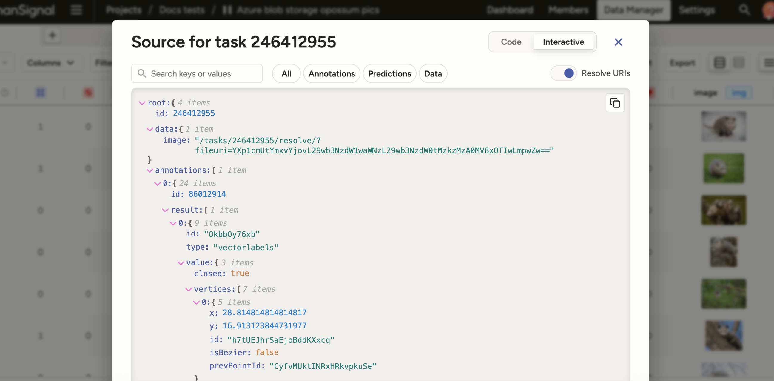 When clicking Show task source <> from the Data Manager, you will see a new Interactive view.
