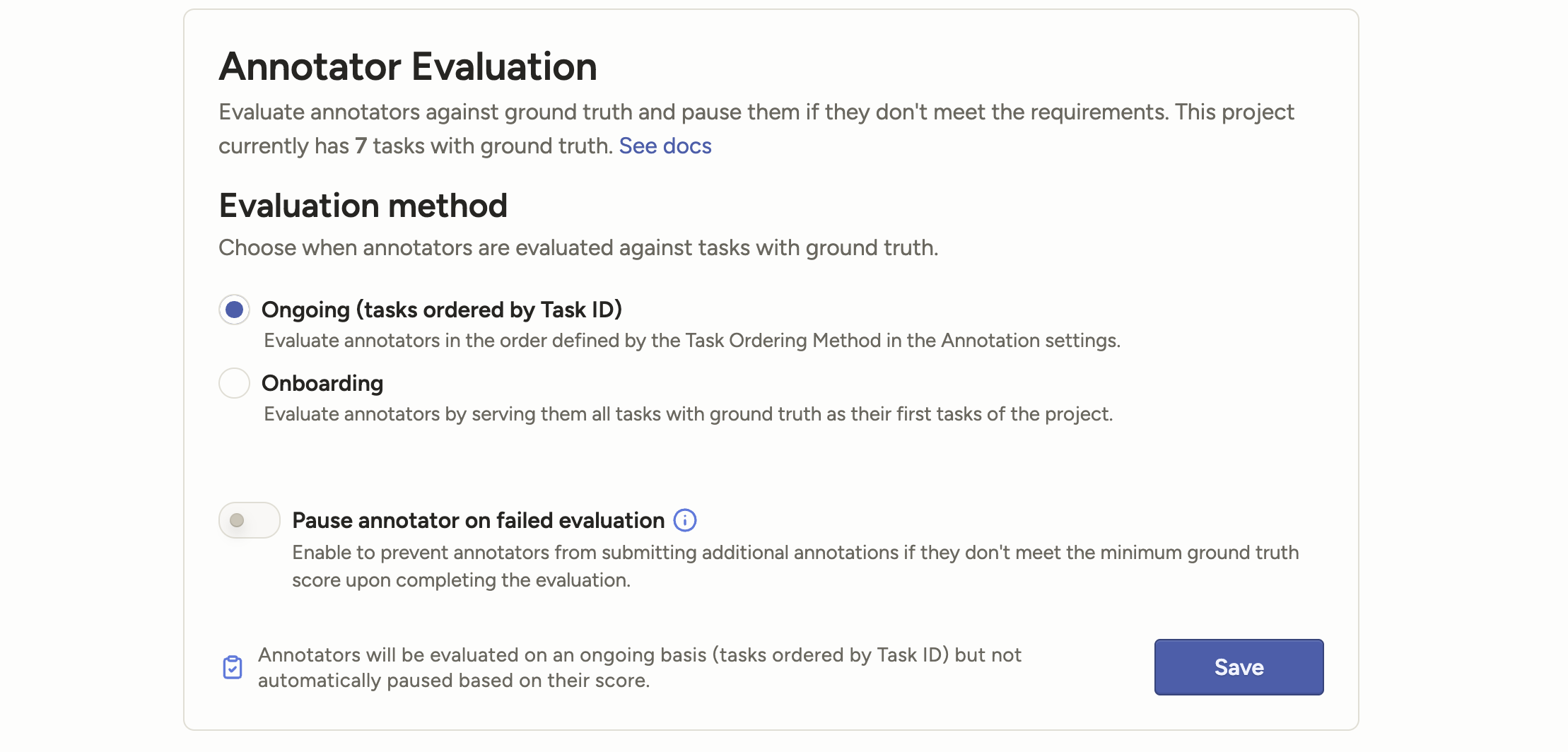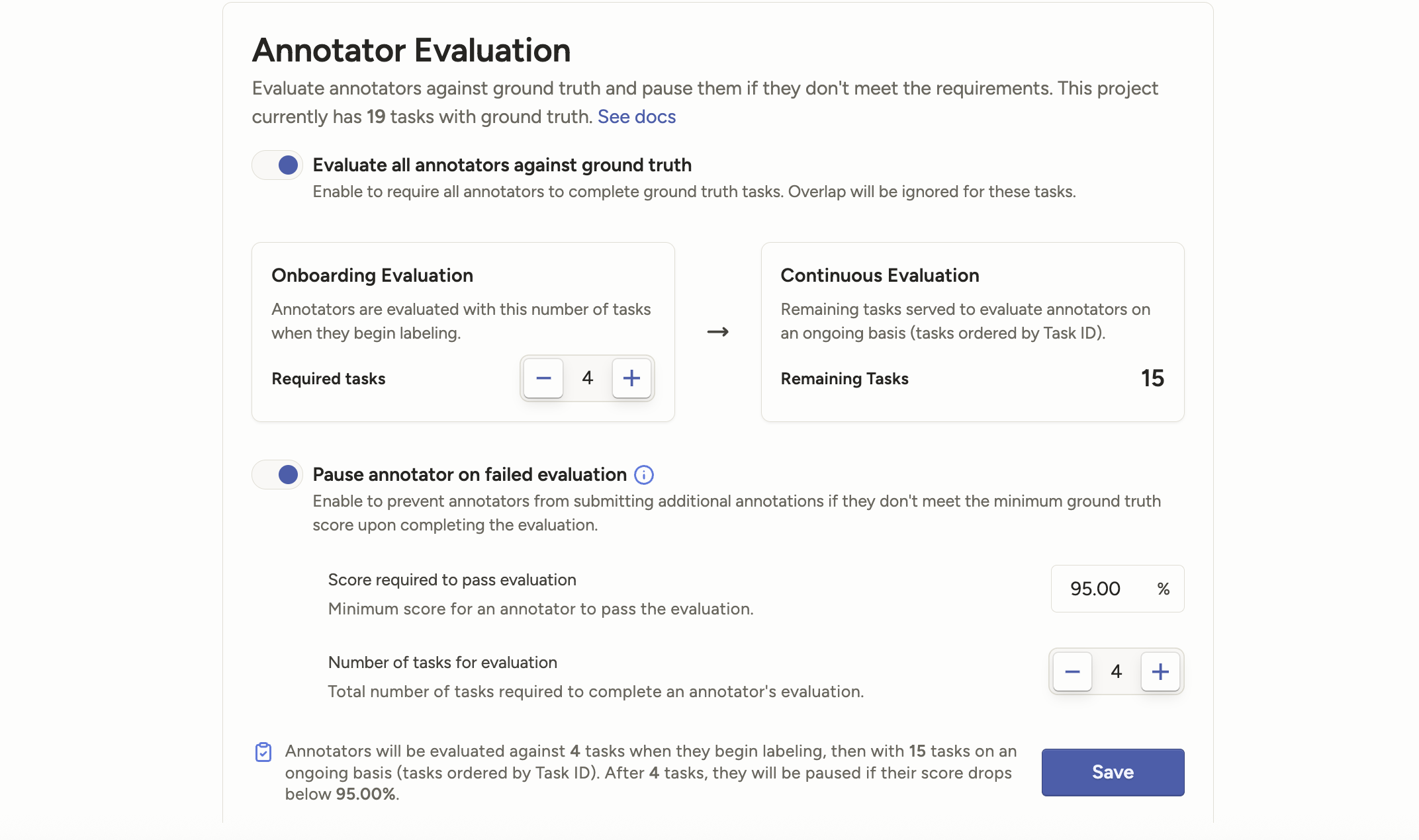 The Annotator Evaluation feature been improved to include a more robust ongoing evaluation functionality and improved clarity within the UI.