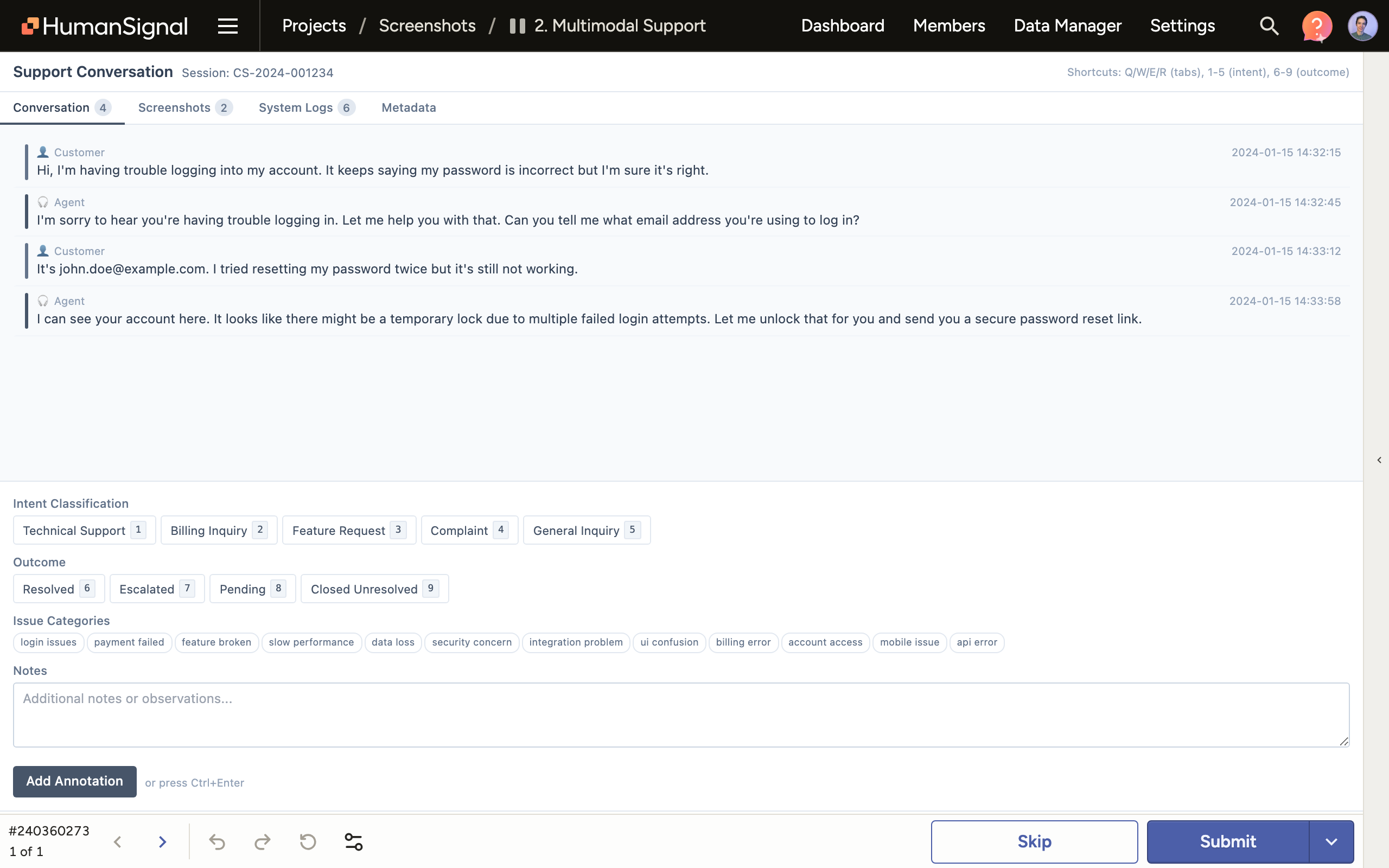 The annotation counter at the bottom of the Data Manager has been updated to read "Submitted Annotations." It previously read "Annotations," which could cause confusion.