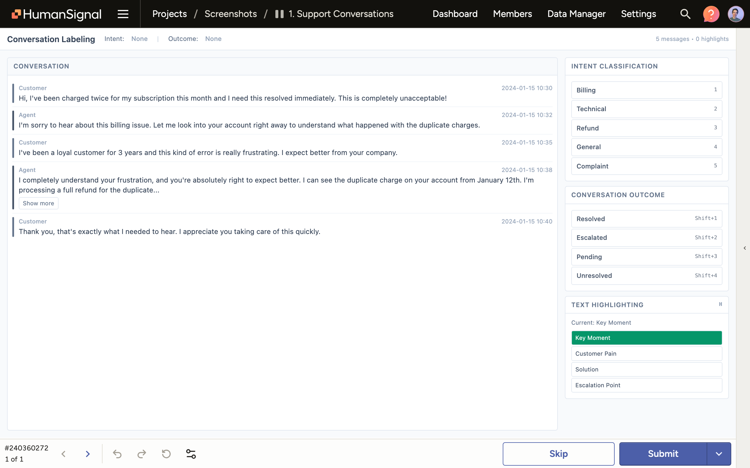 Prompts, our Enterprise tool for evaluating and refining LLM prompts, now supports multi-class text classification projects. This will enable you to label your text with more than one choice, allowing for more complex classification use cases.