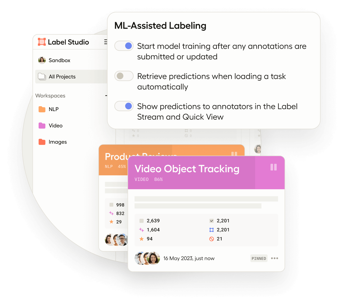 Everything you love about Label Studio Community Edition, with more user controls to support team collaboration.